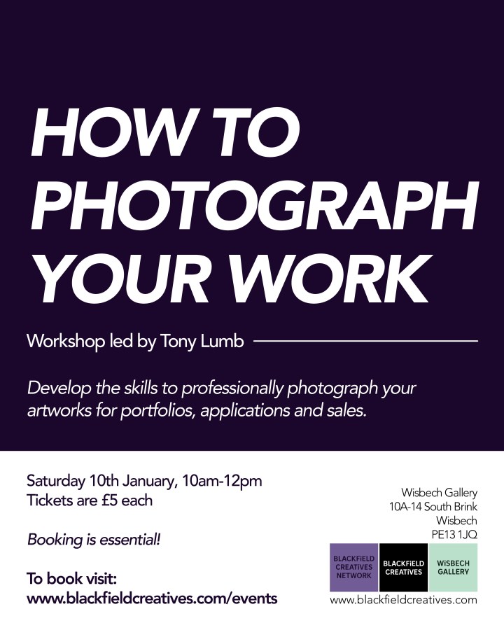 Professional photographer Tony Lumb will be delivering this two hour session in Wisbech Gallery to show you how to take the best images of your work, using either your phone or camera.