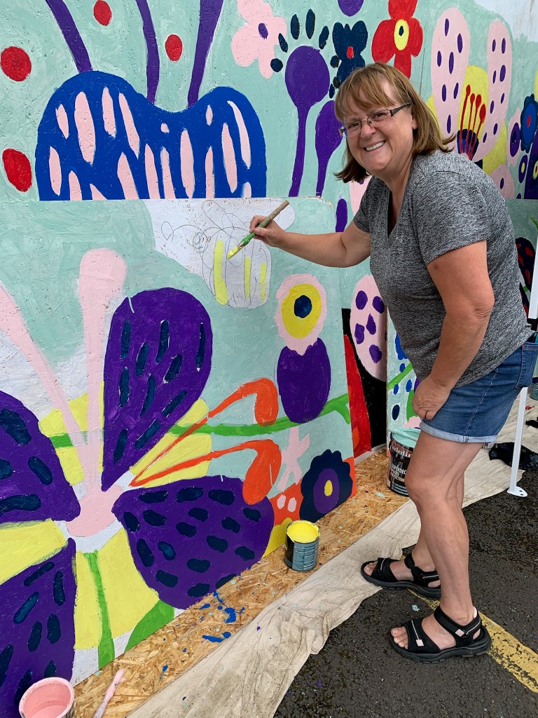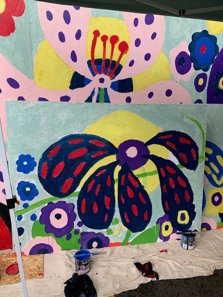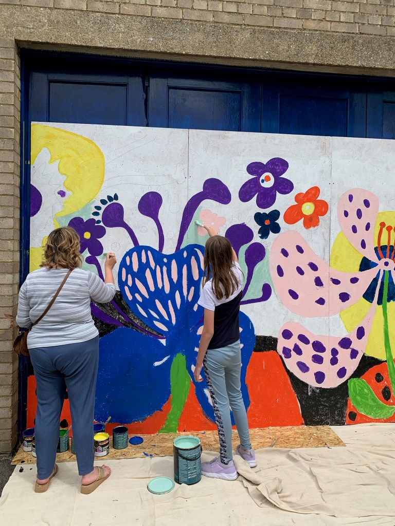 These murals were designed by artist Tim Mann and members of the community joined the Blackfield Creatives team to paint the images over the two days of the event.